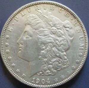 Three U.S. Mints produced the 1904 Morgan silver dollar: New Orleans (3,720,000); San Francisco (2,304,000); and Philadelphia (2,788,000). After these 8,812,000 were minted, it would be another 16 years before another Morgan was struck, that being 1921 which was its last year before the Peace silver dollar took its place.