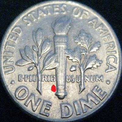 Three U. S. Mints were involved with the production of Silver Roosevelt Dimes: Denver, San Francisco and Philadelphia. The mint mark is located on the reverse side - lower left (click on the above right image - the red dot is where the mint mark is located). Mint marks are "D" for Denver and "S" for the San Francisco Mints. If no mint mark appears, it was minted in Philadelphia.